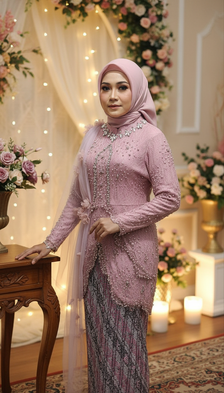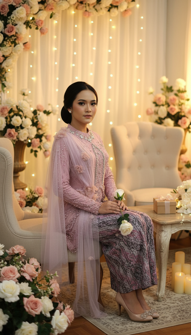 Kebaya, rok, hiasan pundak lepas pasang
